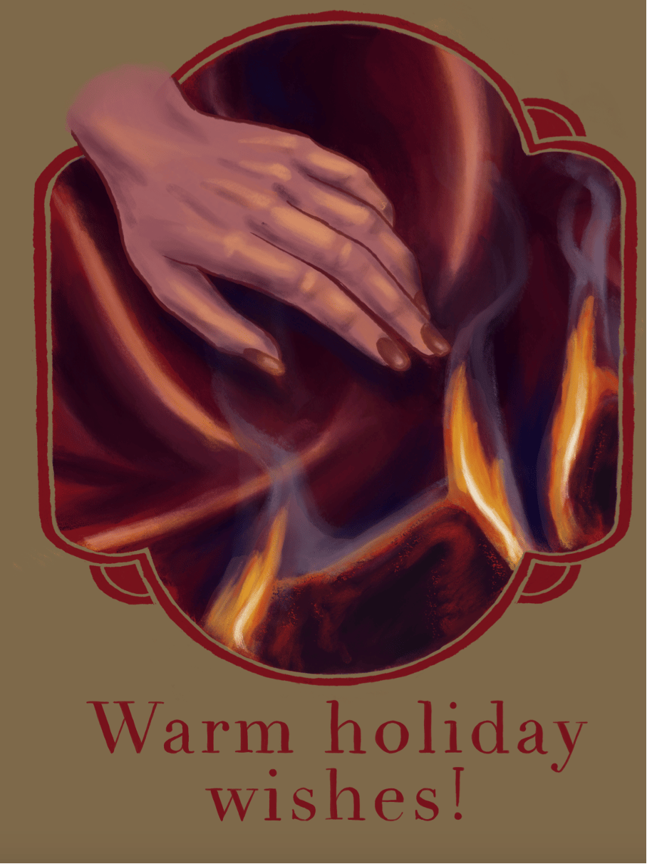 Add a little mystery to your festive wishes with this card on fire.